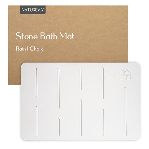 The Natureva Stone Bath Mat is made from natural diatomaceous earth, instantly absorbing water and drying quickly to keep your bathroom clean and safe. Its non-slip design with grooves and a secure rubber base prevents slipping while adding a sleek, modern look to your space.