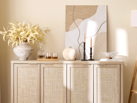 Spring 2026 interiors are embracing a thoughtful balance of beauty and practicality. Designers are moving beyond stark minimalism to incorporate organic materials, refined colour palettes, artistic details, and multifunctional layouts that support evolving lifestyles. For colours, think earthy, grounded palettes like greens, ochre, and earthy terracotta. Rattan, wicker, and woven textures are the new key materials we’ll be seeing throughout lamps to baskets and wall art – creating warmth and a nature‑inspired feel. The result is a layered, tactile aesthetic that values comfort and individuality, creating spaces that feel curated yet livable. From Article, Simons, Veradek and more, read on to discover new ways to love your home with these spring-ready trends.